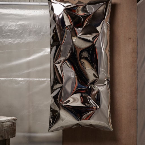 Made of inflated brass — a technique characterized by unpredictable results — this piece takes the shape of a cushion. The process involves inflating sheet metal against a piece of stone, transforming it into a three-dimensional shape which echoes the shape of the stone. This method changes both the appearence and the structural properties of the metal. The result challenges our preconceptions about materials and their properties. Poetic and playful, this is an artwork with impact.
